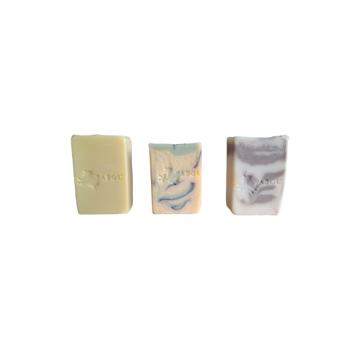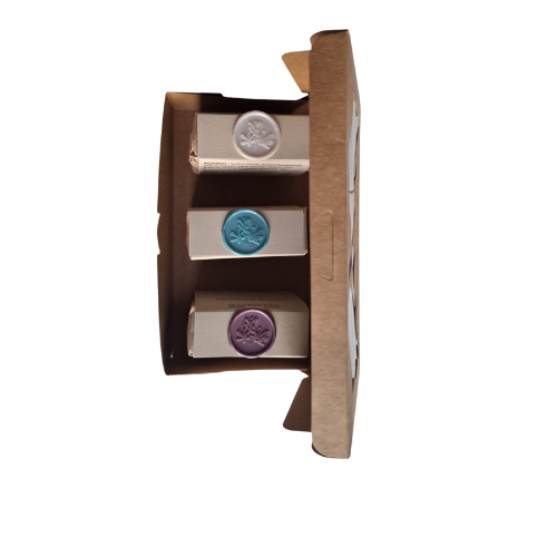 Ce coffret réunit trois créations uniques, fabriquées selon la méthode traditionnelle de saponification à froid :